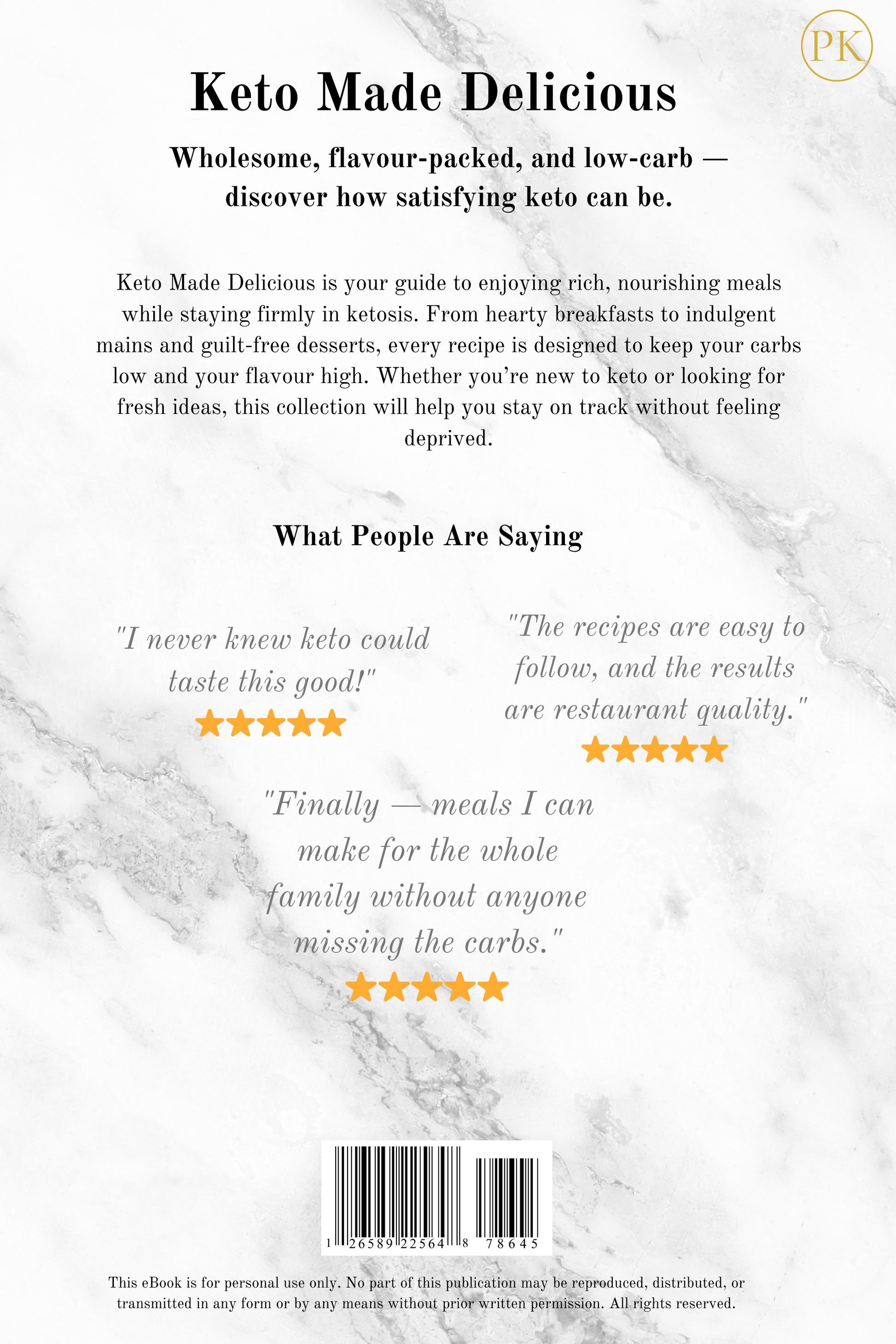 Pinnacle Keto is packed with 30 low-carb recipes designed to make keto simple, satisfying, and sustainable. From energising breakfasts to indulgent mains and guilt-free desserts, each dish is crafted to keep your carbs low and your flavour high.